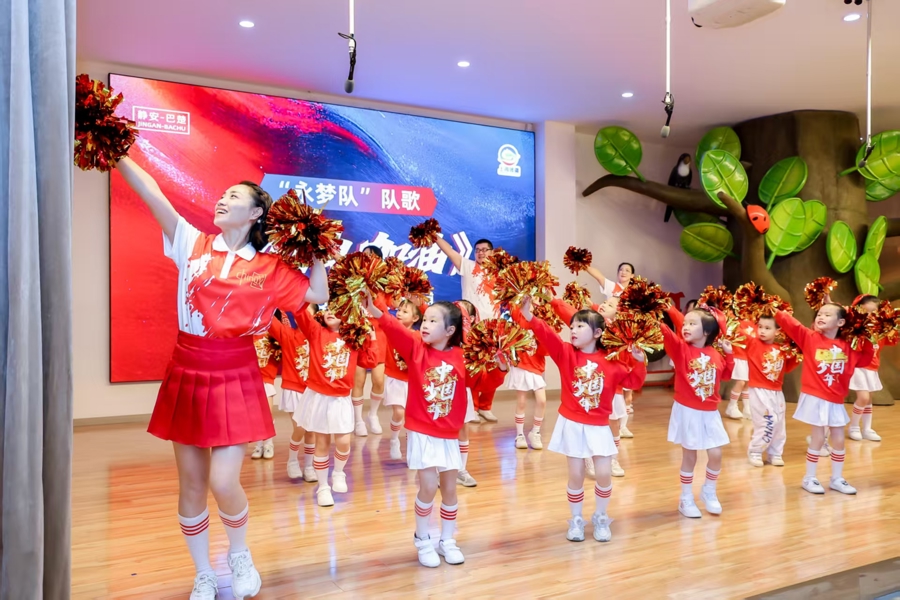 两所幼儿园都是首批“全国足球特色幼儿园”,足球早已成为孩子们熟悉的“语言”。“足球不仅是促进身心全面发展的运动,更是生动的文化启蒙,在幼儿心中播下规则、团结与拼搏的种子。”静安区永和路幼儿园园长冯炜说,“永”取自永和路幼儿园,“梦”取自童梦幼儿园,两园共同开启“永梦娃娃玩足球”项目,以足球为媒介,将德育、智育、体育、美育和劳育有机融合。当孩子们在绿茵场上为同一目标奔跑协作,他们体验到的正是“像石榴籽一样紧紧抱在一起”的团队精神。这种体验,比任何说教都更深刻地铸牢中华民族共同体意识。